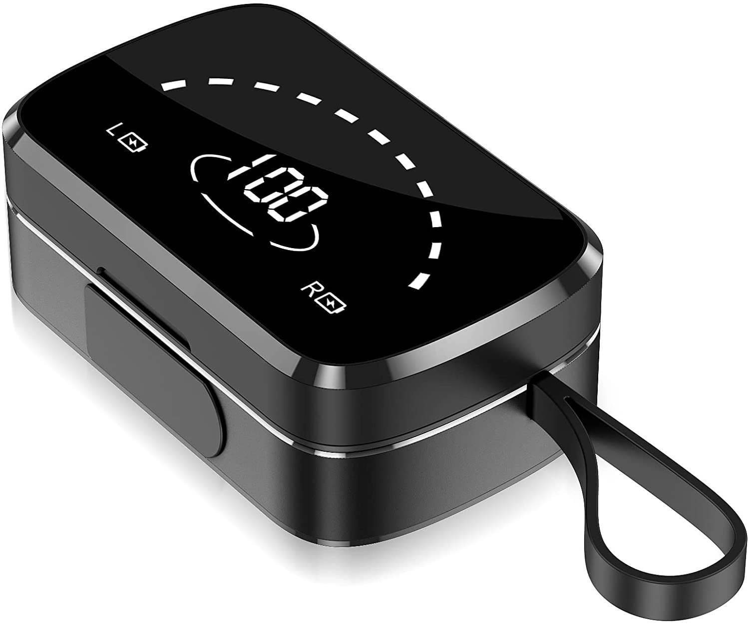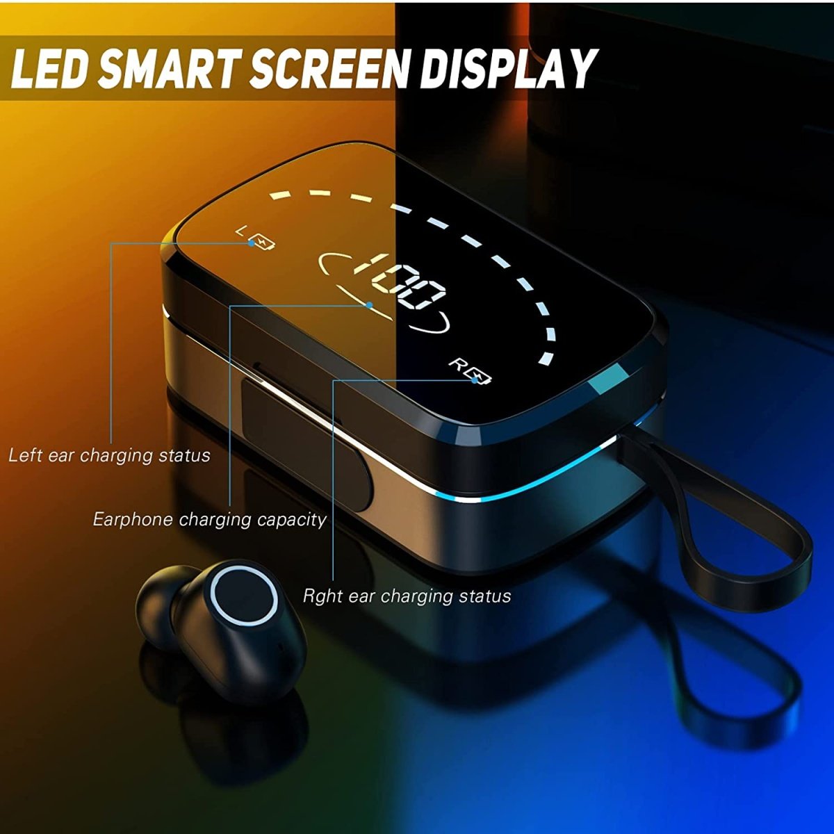 True Wireless Street Buds S70 Pro Bluetooth 5.0 Earbuds in-Ear Stereo Headphones with Smart LED Display Charging Case, IPX8 Waterproof Deep Bass with Mic