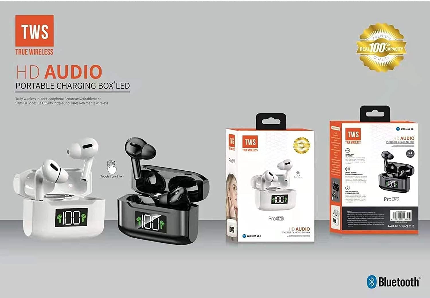 True Wireless Street Buds S70 Pro Bluetooth 5.0 Earbuds in-Ear Stereo Headphones with Smart LED Display Charging Case, IPX8 Waterproof Deep Bass with Mic