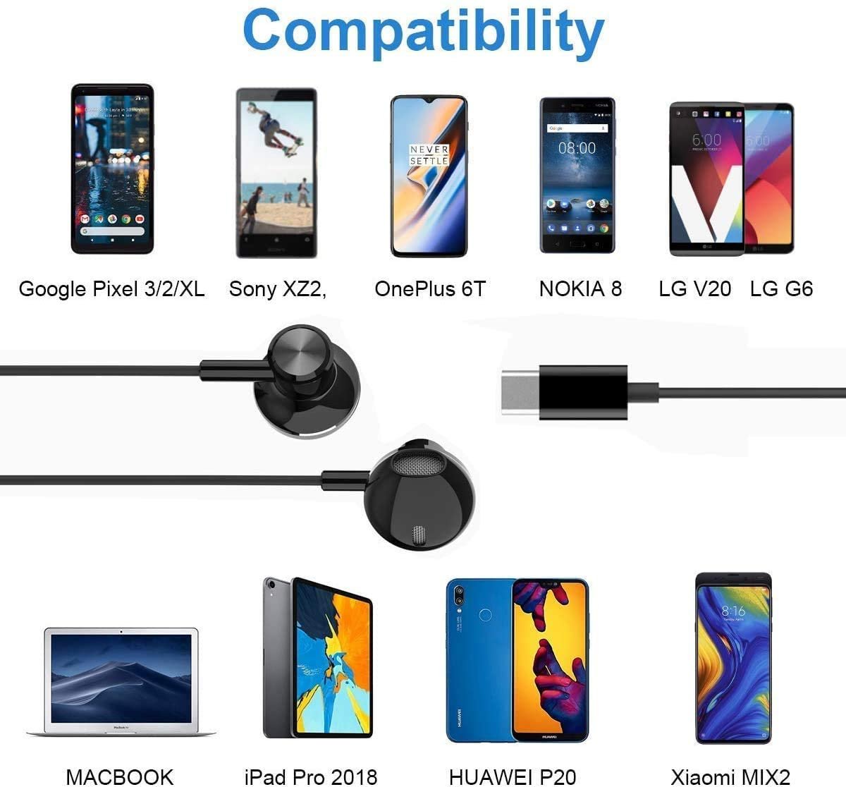 • ♫【Built in Mic & Remote Control】: The USB C Earbuds built in remote control button and hands-free MIC allowing calling function ,music and volume control.