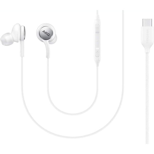 UrbanX Best 2021 Universal Stereo Headphones, Braided Cable With volume Buttons– Designed by AKG – with Microphone (White) USB-C Connector (US Version with Warranty)