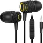 UrbanX Universal Corded In-Ear Stereo 3.5mm Jack Headphones, Noise-Canceling Wired Headphones with Microphone and Volume Buttons – Black (US Version with Warranty)