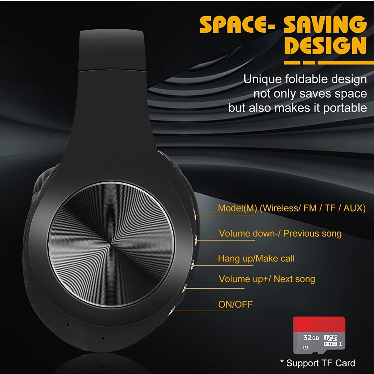 UrbanX UX991 Wireless Bluetooth Stereo Earphones High Resolution Audio Deep Bass Superior Comfort Over The Ear Headphones with Mic Phone Call Support