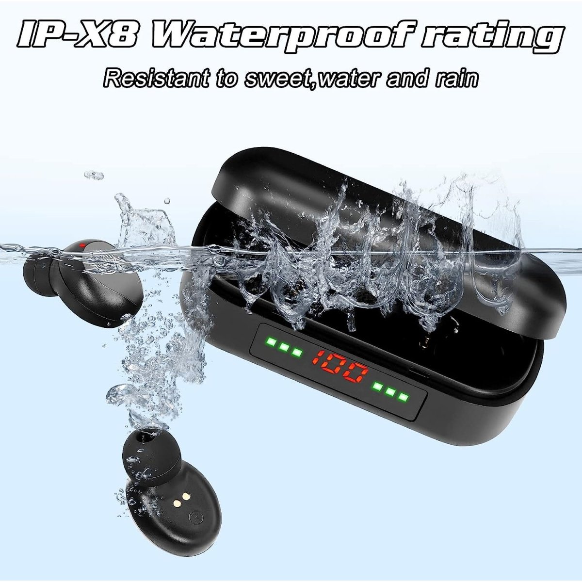 UrbanX Q350 Universal Wireless Earbuds in Ear Bluetooth Headphones with Microphone & Digital Display IPX7 Waterproof Deep Bass Bluetooth Earbuds for Sport Work & Music