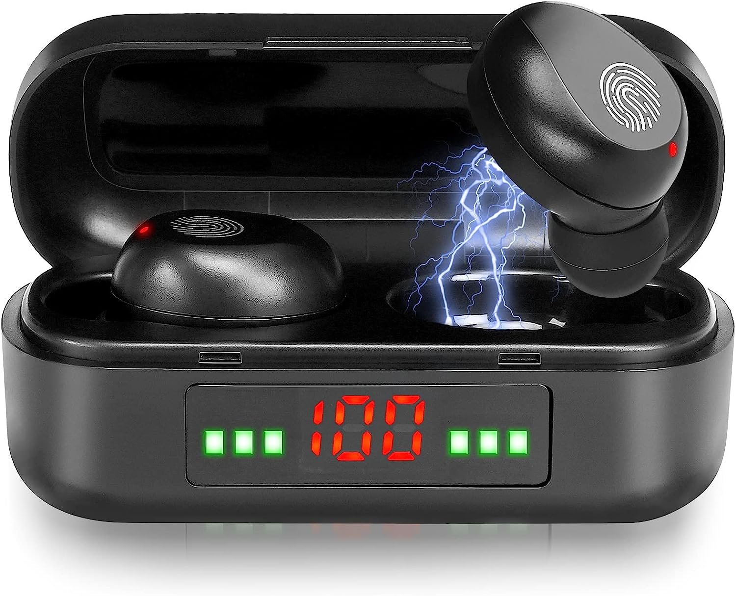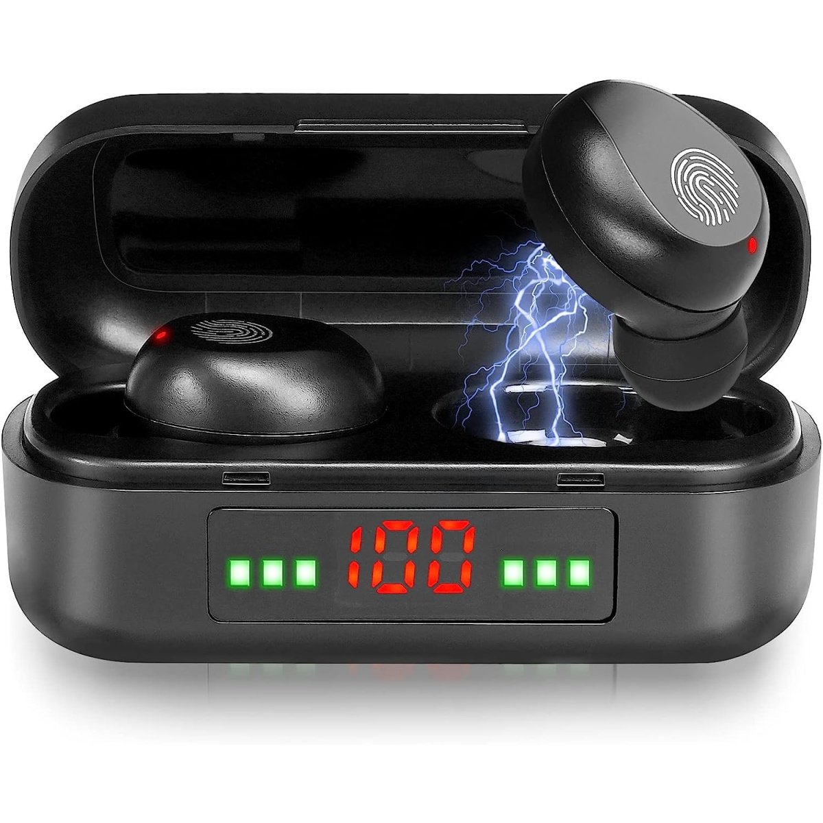 UrbanX Wireless Earbuds Bluetooth 5.0 Headphones with Digital LED Display Charging Case Stereo Mini Earphones in Ear Waterproof Headset- Black