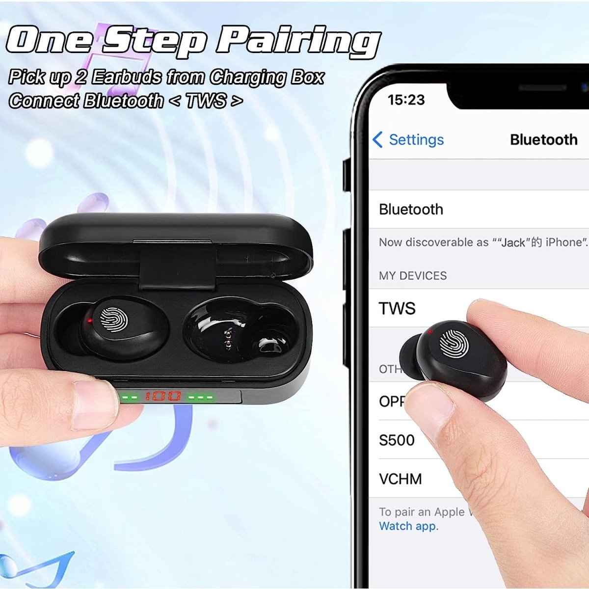 • 【Smart Touch Control】User friendly design and easy operation. By tapping the Bluetooth earphones to answer/reject the call, hang up the phone, wake up digitaql assistant, music play/pause, previous/next track, volume up/down.